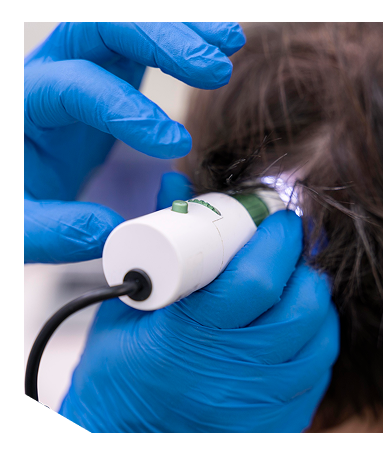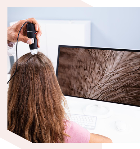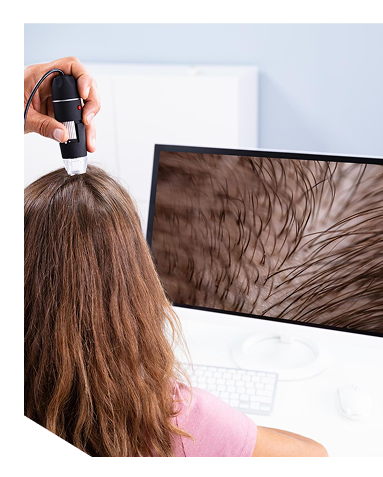 Trichoscopy uses high-magnification digital imaging to examine the scalp and hair follicles in detail. Unlike a standard visual exam, it reveals follicle miniaturization, hair shaft variation, inflammation, and early thinning that cannot be seen with the naked eye. This allows for accurate diagnosis and targeted treatment planning. It is painless, non-invasive, and performed during your consultation.